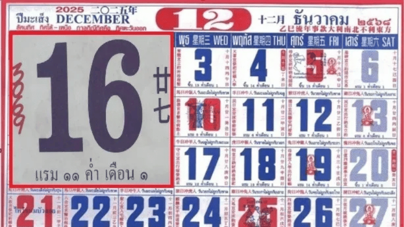 เลขเด็ด “หวยปฏิทินจีน” งวดวันที่ 16 ธันวาคม 68 ของมันแรงจริง! คอหวยห้ามหลุดโผ luckyvip